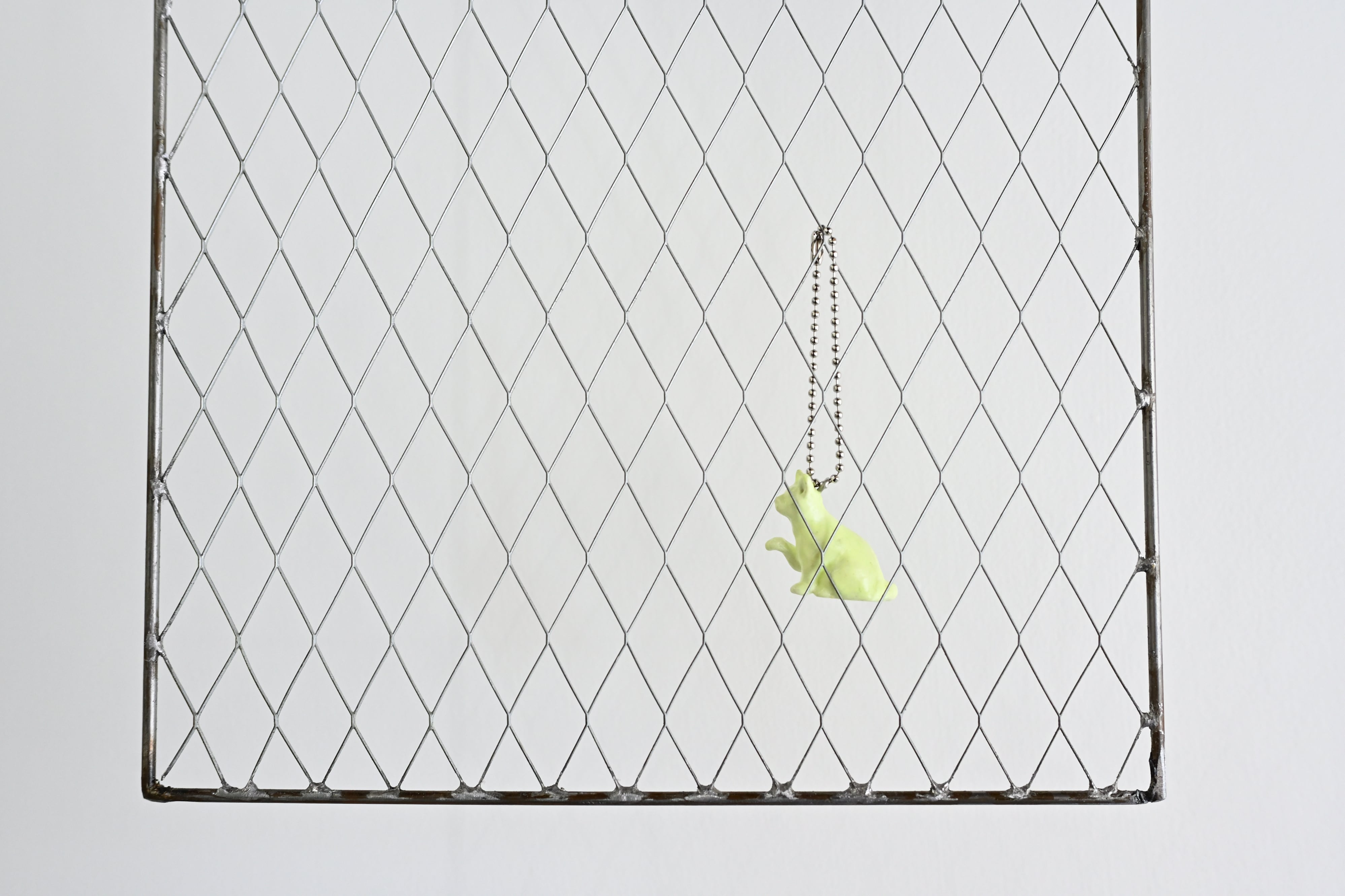 当たり前の事象を受動的に受け入れ続けることへの危機感を制作の主題としています。見えにくいものを見ようとする事と、想像を膨らませる事は似ていると感じます。見づらい作品を制作することで「目を凝らしてよく見て」もらい、当たり前のように見過ごされる違和感の再考を試みています。最近は工事や公園で使用されるフェンスを、風景画(P号)のキャンバスの比率で制作しています。フェンスは内側と外側の安全や安心を守る役割を持っています。しかし安全安心は時には退屈で、何か変化を期待してしまいます。退屈を打破する機会を、フェンス越しの景色を眺めながら常に伺っている様な気がします。