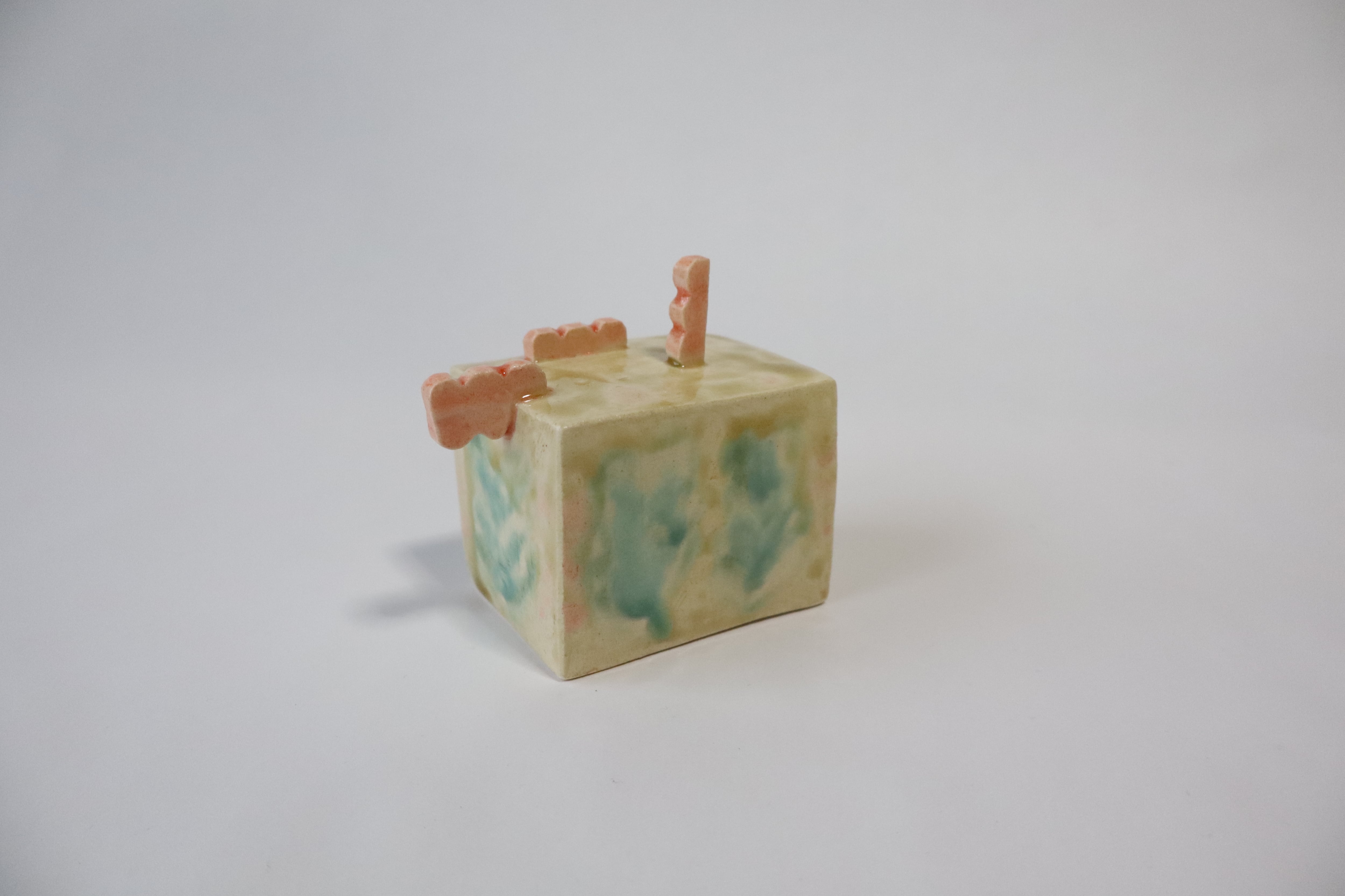 色遊びのような感覚で釉薬を扱い、その場の感覚に任せて色を重ねています。窯の中で生まれる意図しきれない色の変化や、完成したあとに気づく違和感や面白さも含めて、作品としてとどめています。