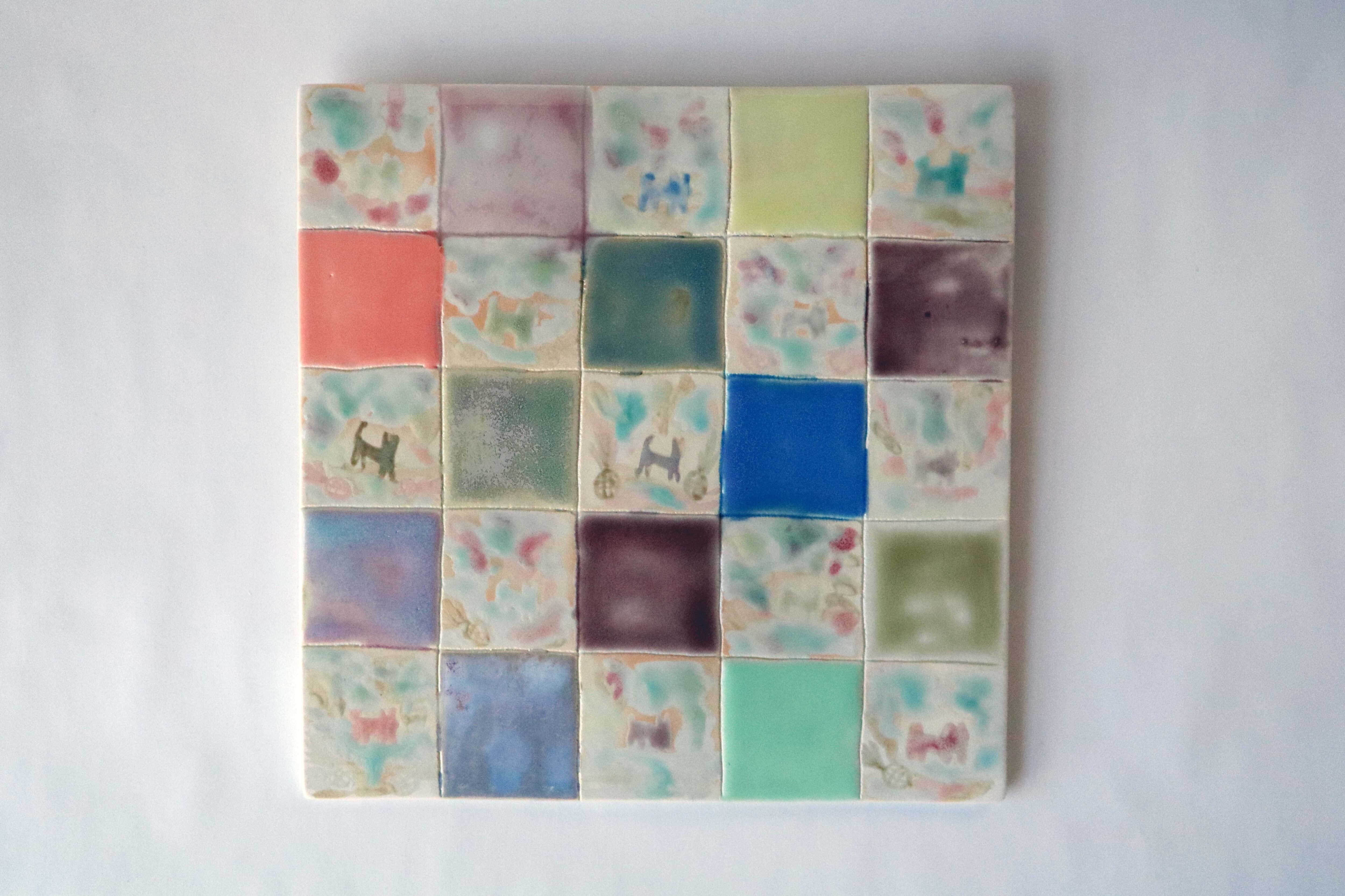 色遊びのような感覚で釉薬を扱い、その場の感覚に任せて色を重ねています。窯の中で生まれる意図しきれない色の変化や、完成したあとに気づく違和感や面白さも含めて、作品としてとどめています。